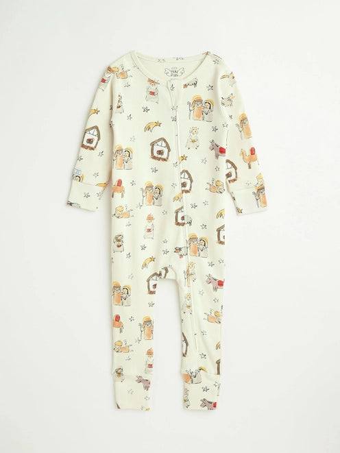 Away in A Manger Pj Footless Onesie Cotton