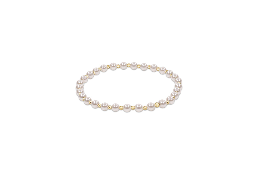 E Newton - Classic Gold Sincerity Pattern 4mm Bead Bracelet - Pearl