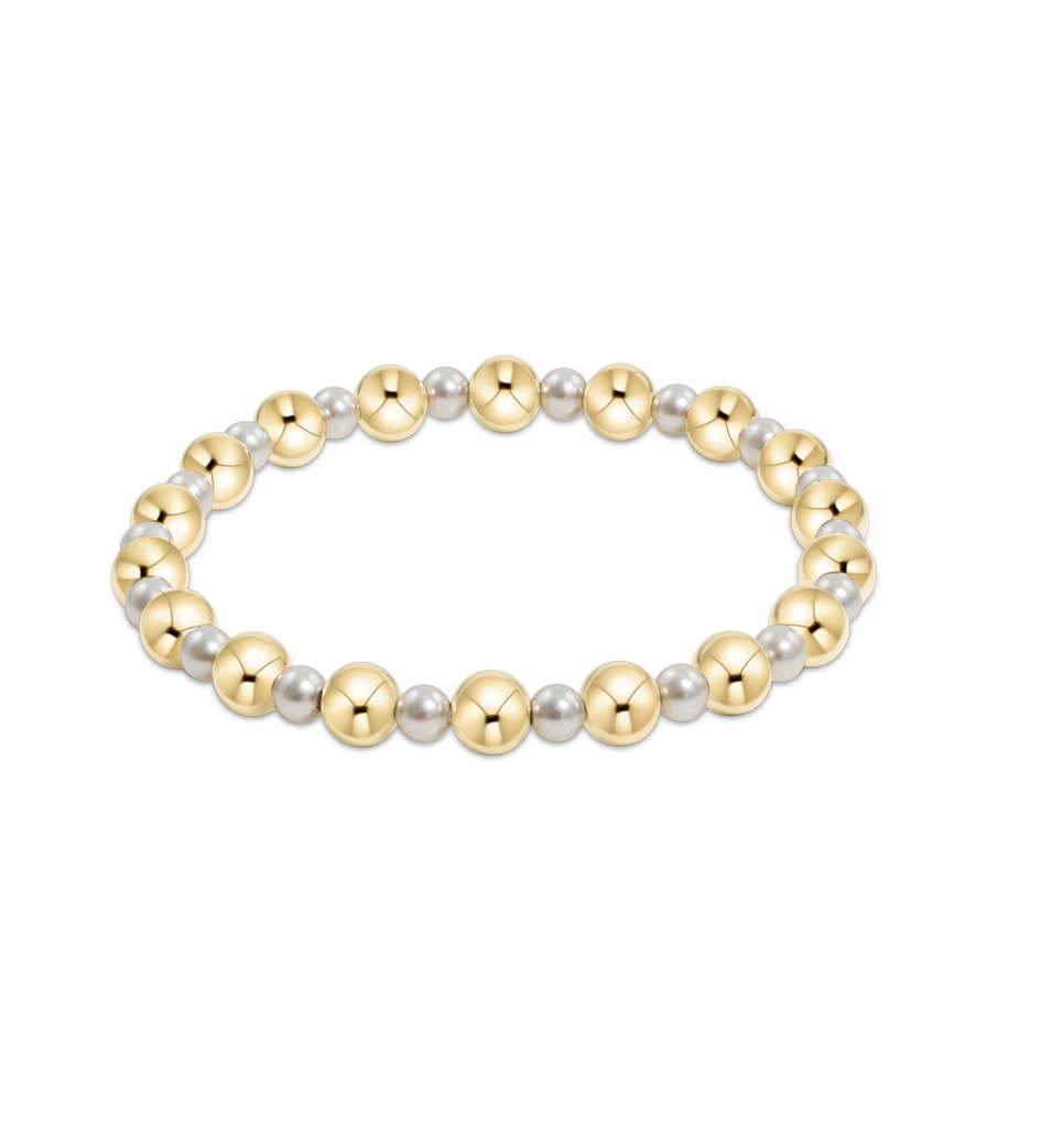 E Newton - Pearl Grateful Pattern 4mm Bead Bracelet - 6mm Gold